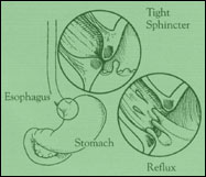 liquid to the stomach.  A sphincter, or specialized muscle, is located at the end of the esophagus. Known as the lower esophageal sphincter (LES), this muscle contracts much the same as the anus does.  The sphincter should maintain a certain pressure to keep the end of the esophagus closed, so that stomach juices are not admitted. The LES muscle should only open when food is passed into the stomach.